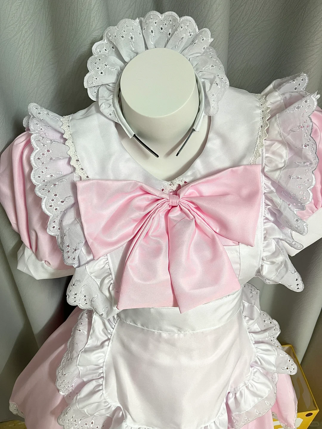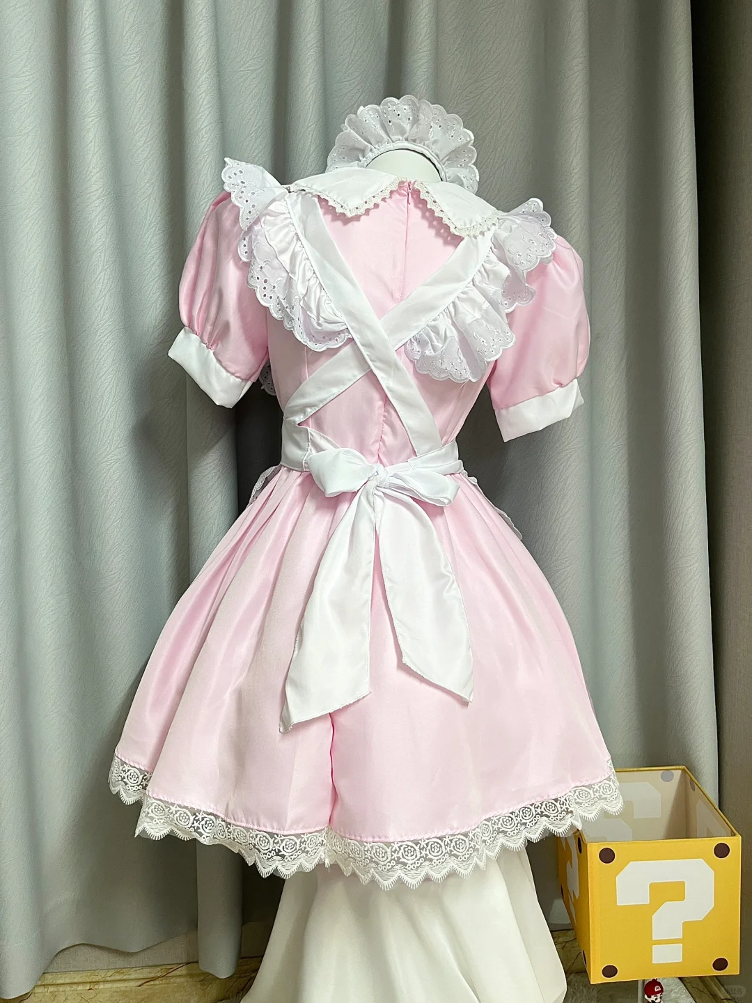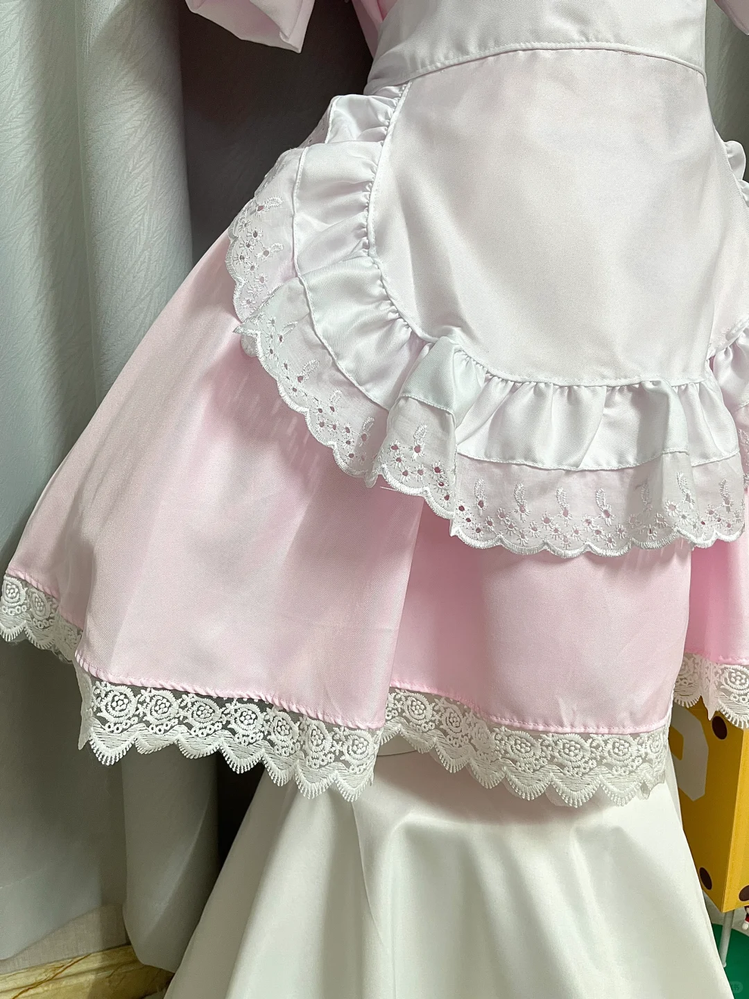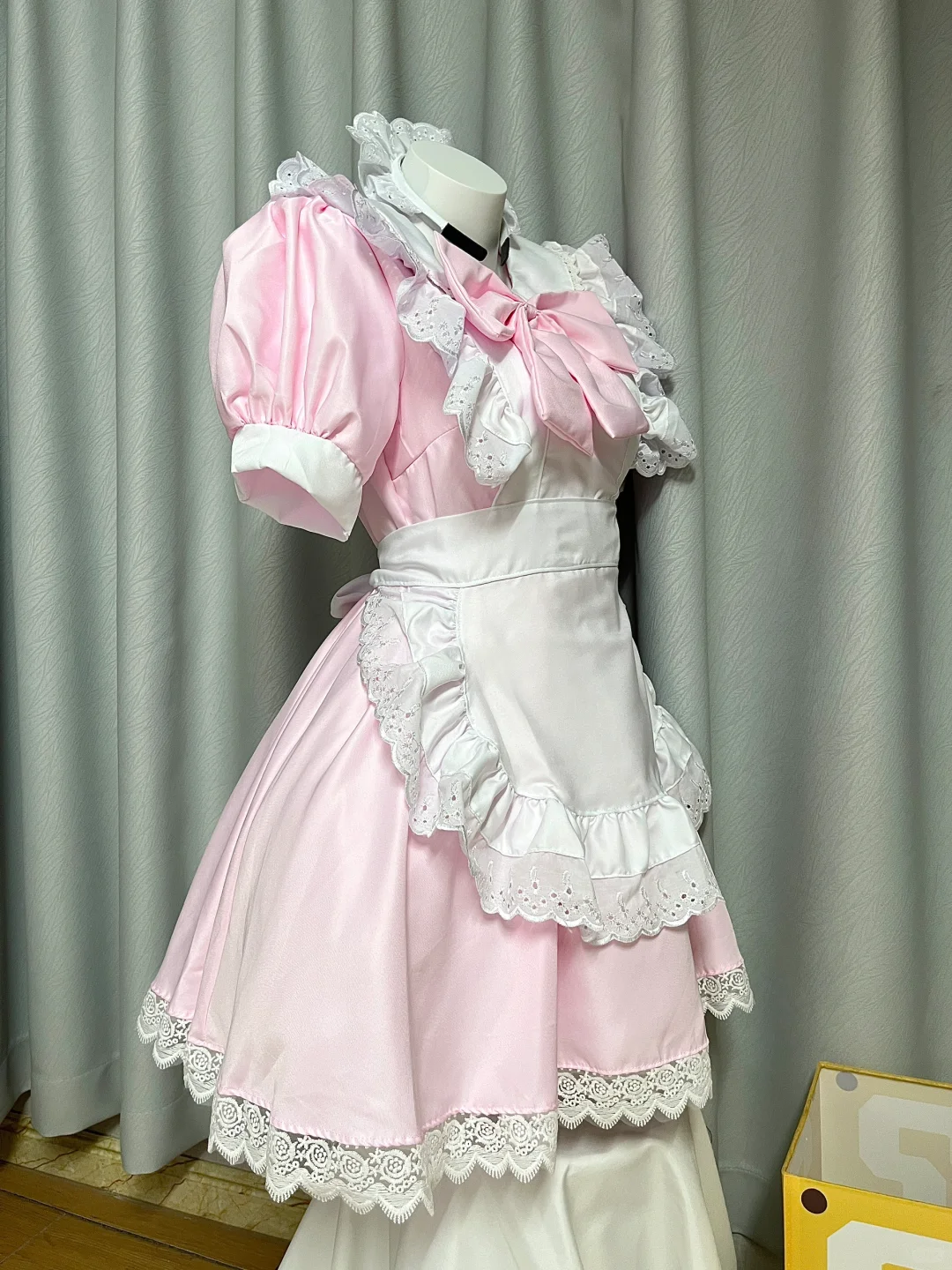 Indulge in the sweetness of pastel colors with this charming Pink & White Maid Dress. Crafted with attention to detail. this outfit features a soft pink base complemented by crisp white ruffles and lace. creating a delightful contrast. The large. delicate pink bow at the chest adds a touch of elegance and charm. while the puffed sleeves and frilly collar bring a classic Maid aesthetic to life. The apron. with its intricate lace trim. enhances the overall look. making this dress perfect for cosplay. themed parties. or adding a bit of cuteness to your wardrobe. Custom sizing is available to ensure a perfect fit. allowing you to express your unique style with comfort and grace.